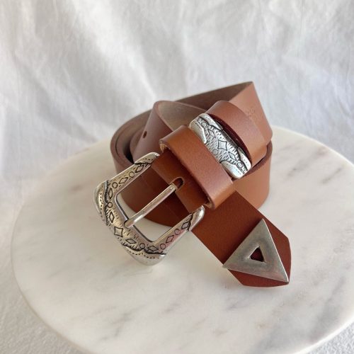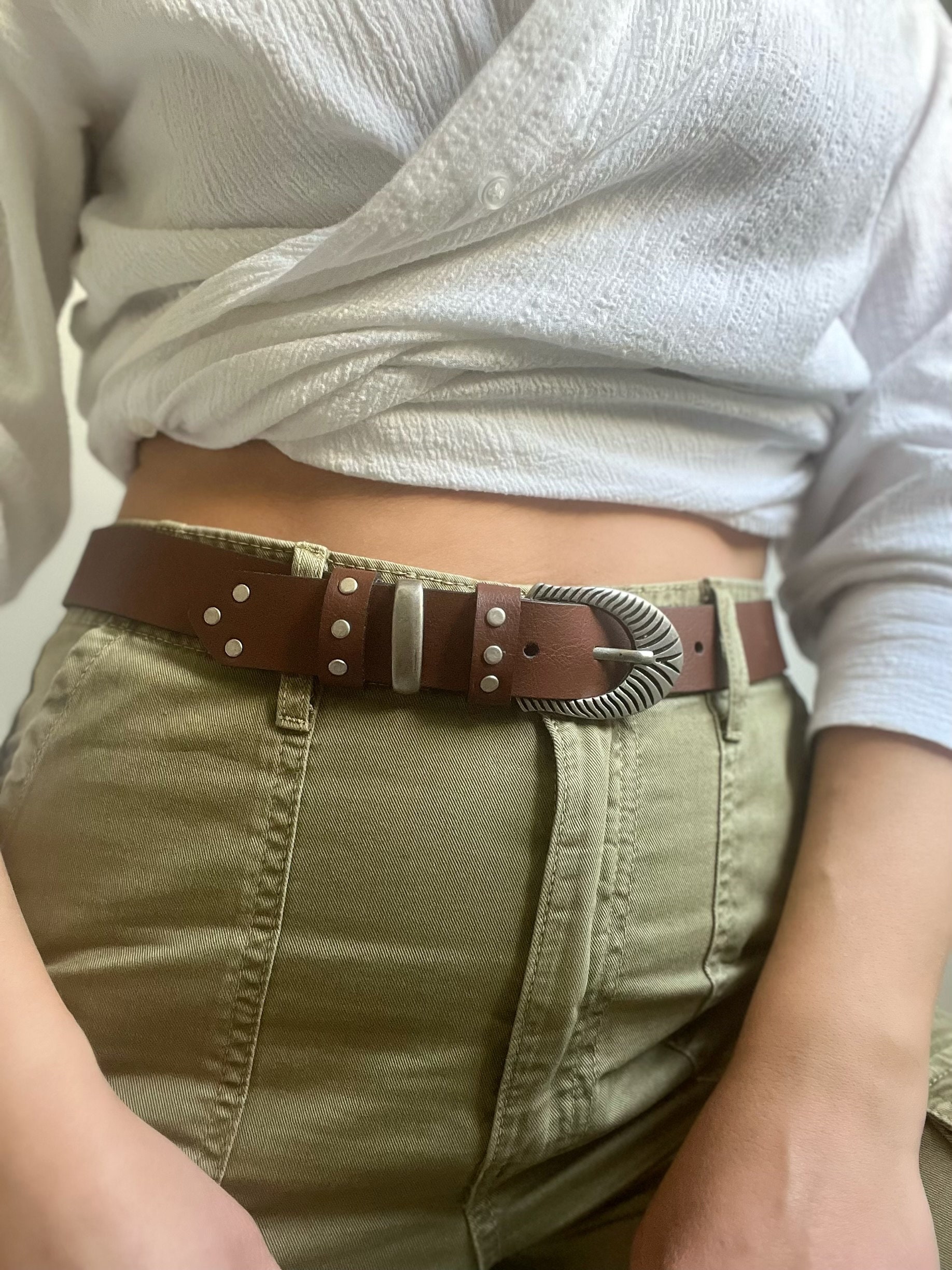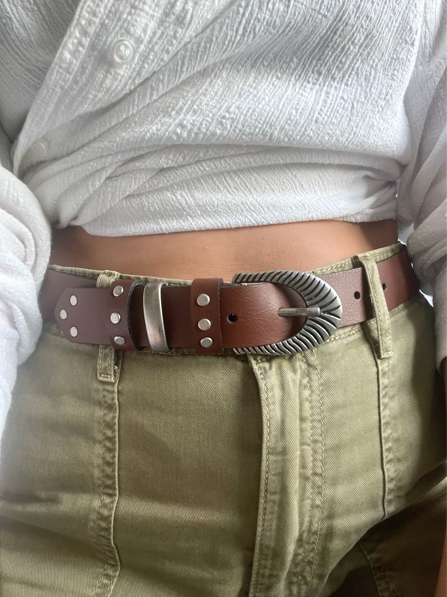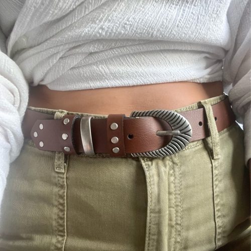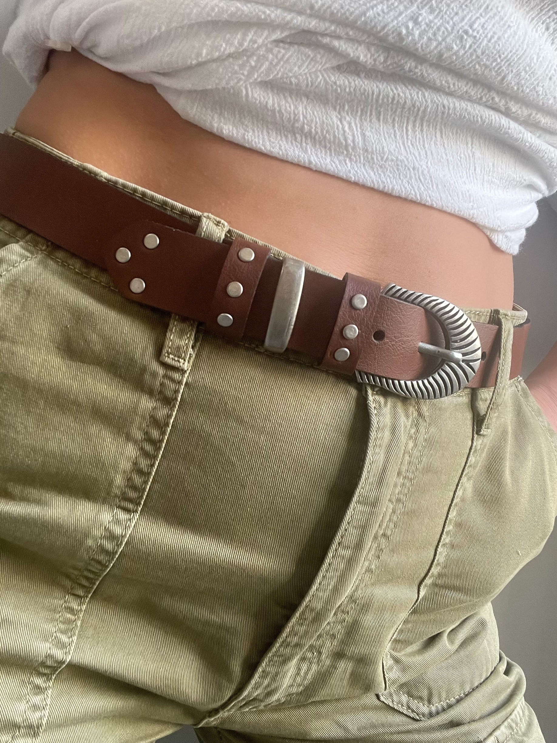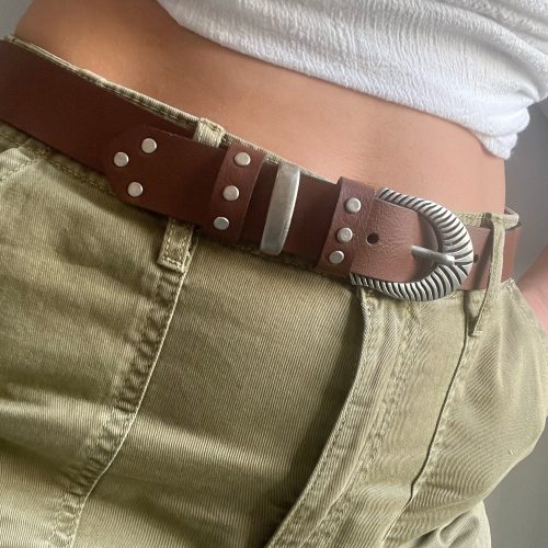 Brown Leather Belt Boho Buckles Studded Women’S Made