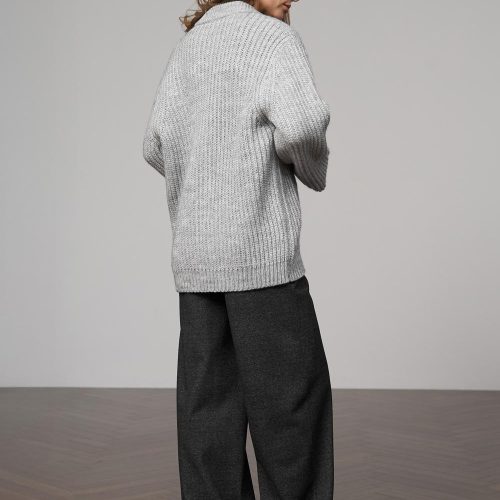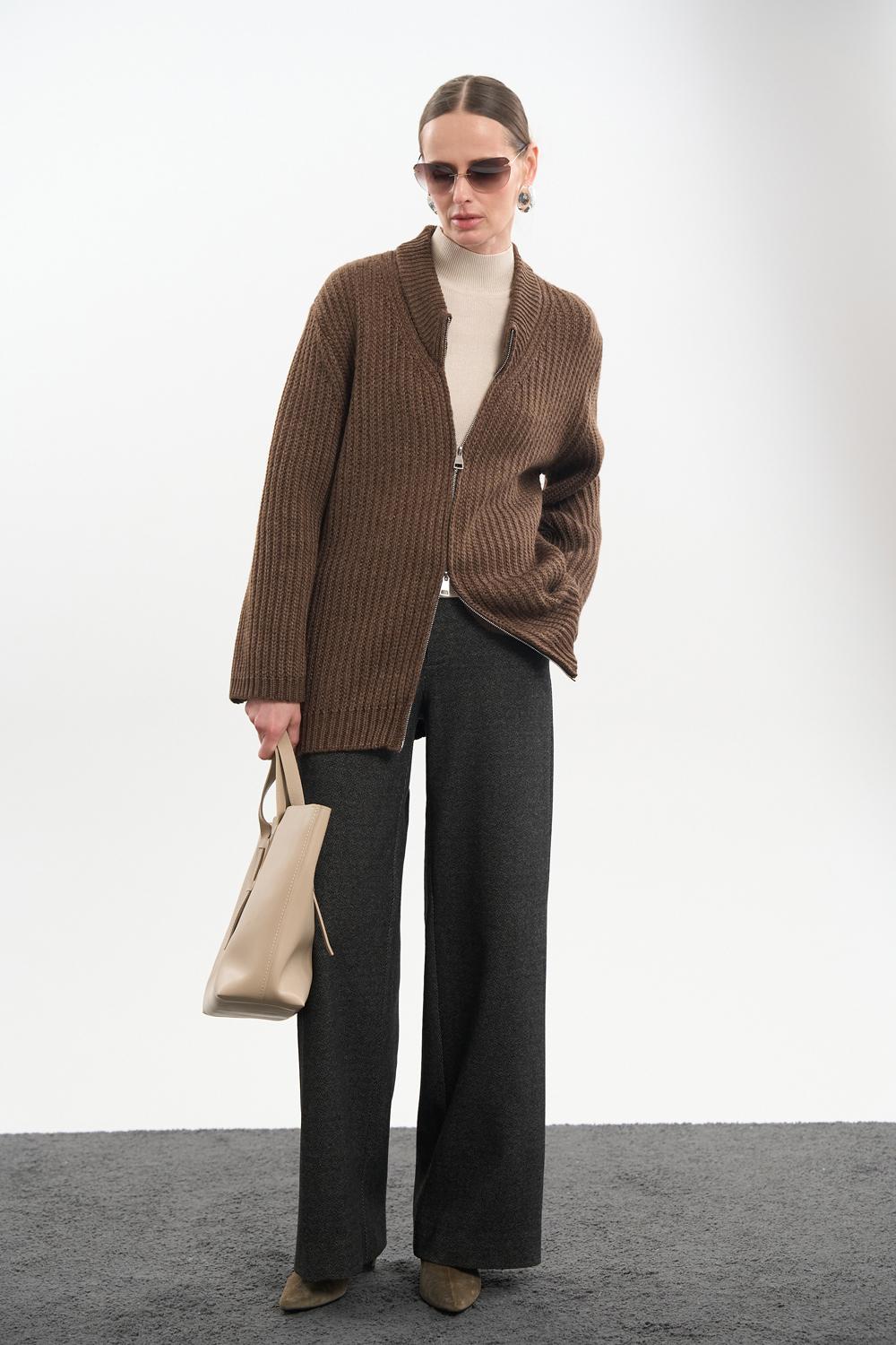 This chunky wool zip cardigan is designed for women who value comfort, structure, and elevated minimalism. Made from a soft wool-rich yarn, it features a thick ribbed texture, a smooth two-way zipper, and a relaxed silhouette that layers beautifully over any outfit.