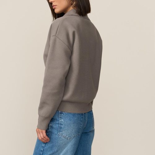 Knit Jacket Hiddenplacket Cardigan Relaxed Fit Bomber Short