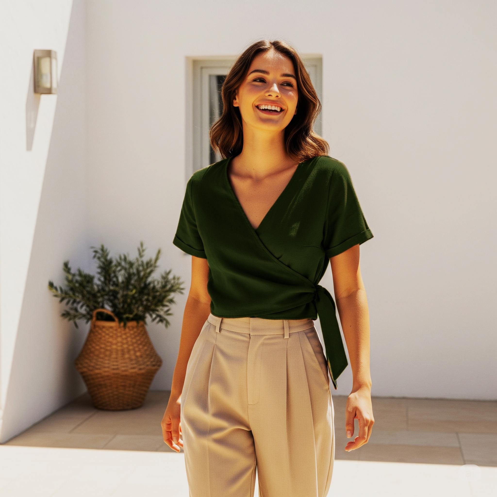 Elle Top – Wrap Linen Top – Summer Wrap Linen Top – Women Wrap Top – Green Linen Top – Short Sleeve Linen Top – Wedding Linen Blouse