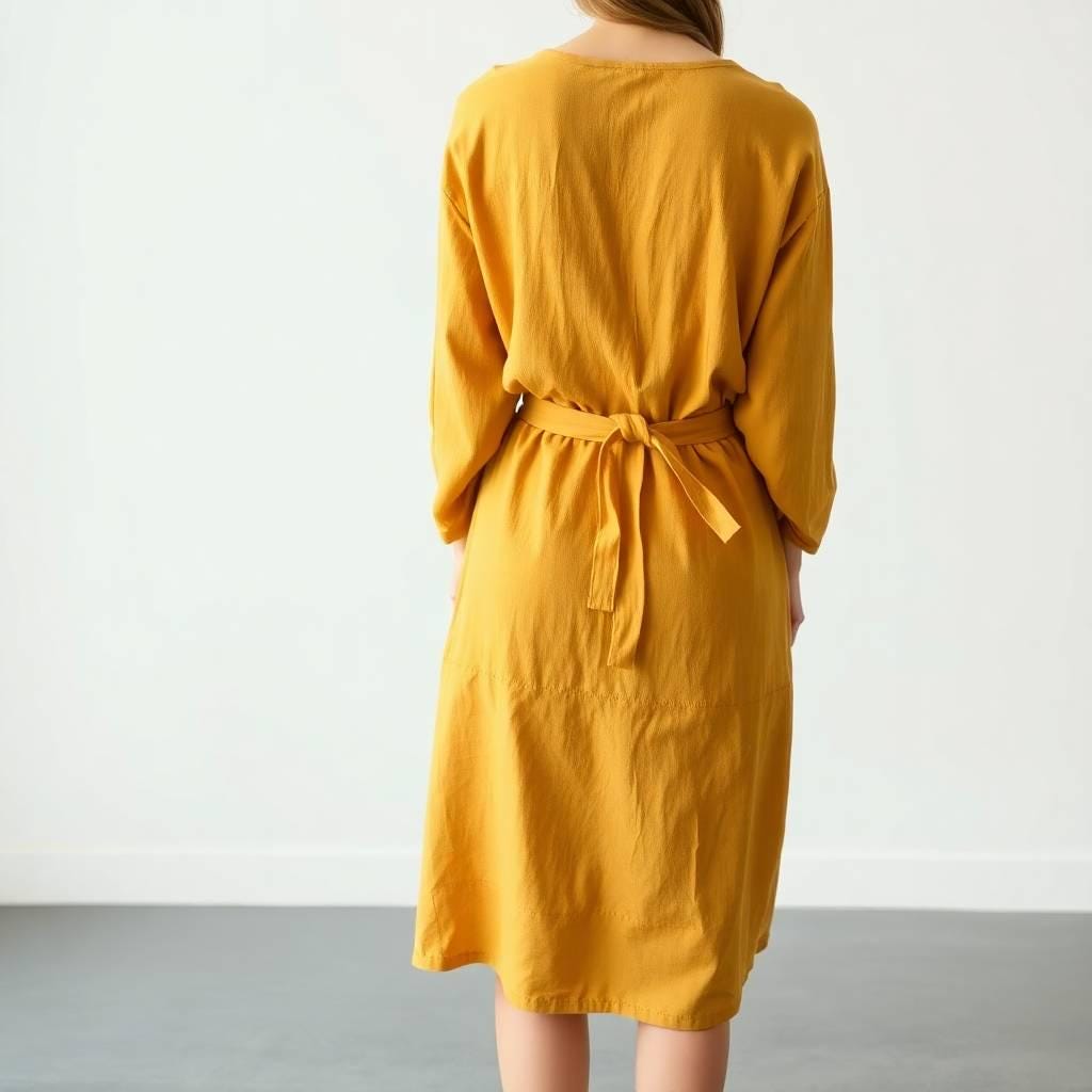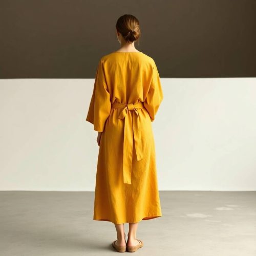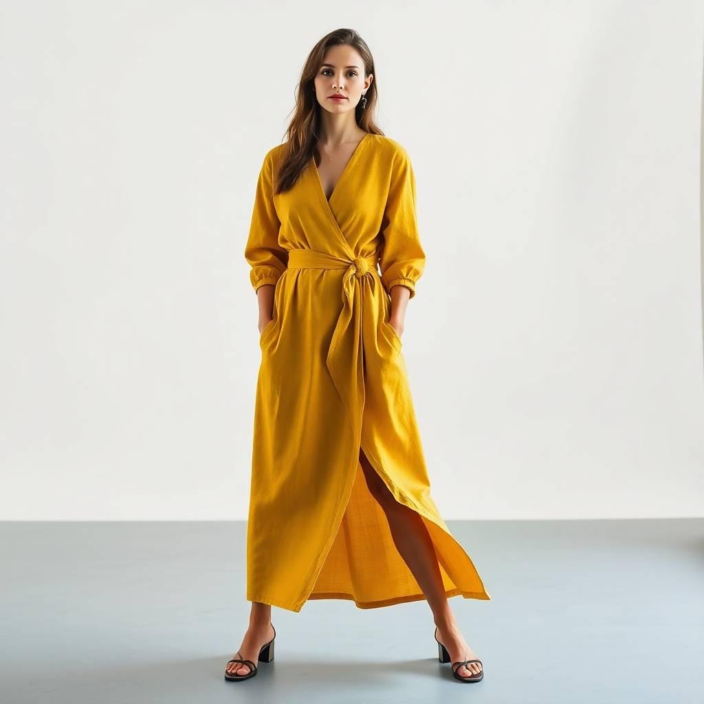 Linen Wrap Maxi Dress: V Neck Kimono Style
