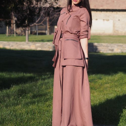 Utility Style Belted Shirt Dress Long Button Down